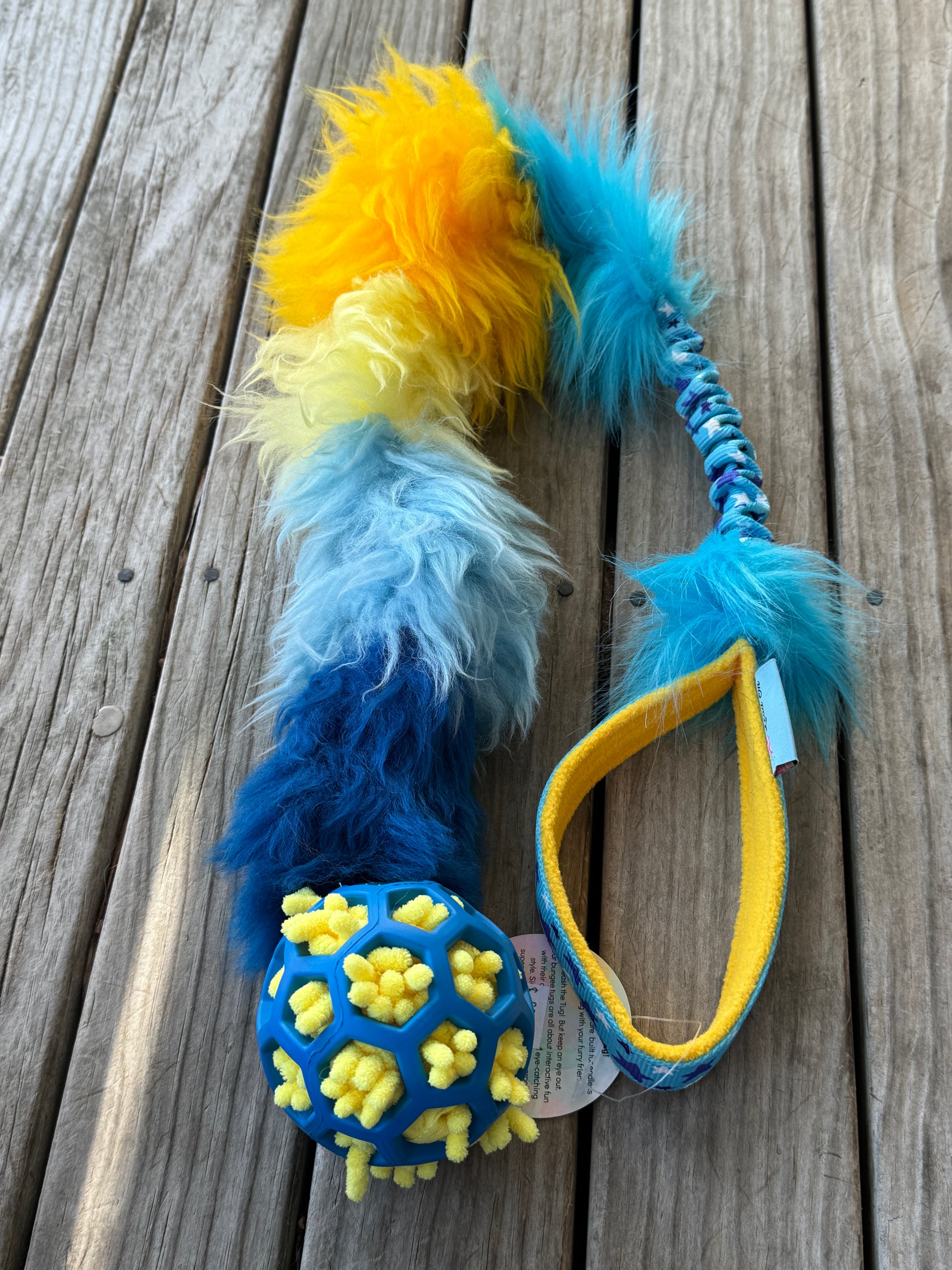 Every dog loves a good fluffy chase and a Holee Roller ball to grab onto. This chaser combines the best of both toys.