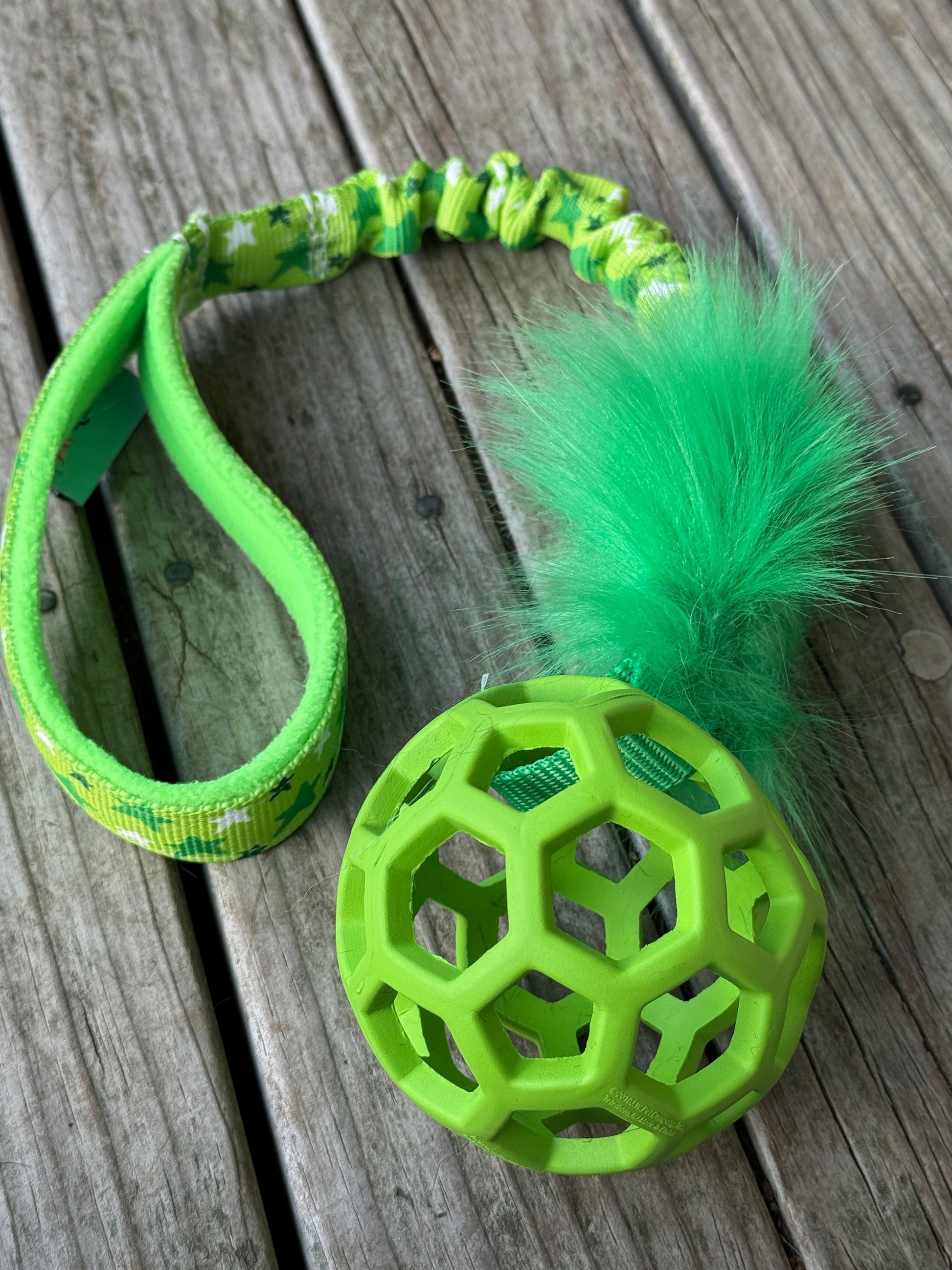 JW Roller balls make great tug toys and can even be stuffed with treats. With a firm Bungee Handle, these tugs will relief to both you and your dog. The handle is lined Polar fleece for your comfort and finished with faux fur.