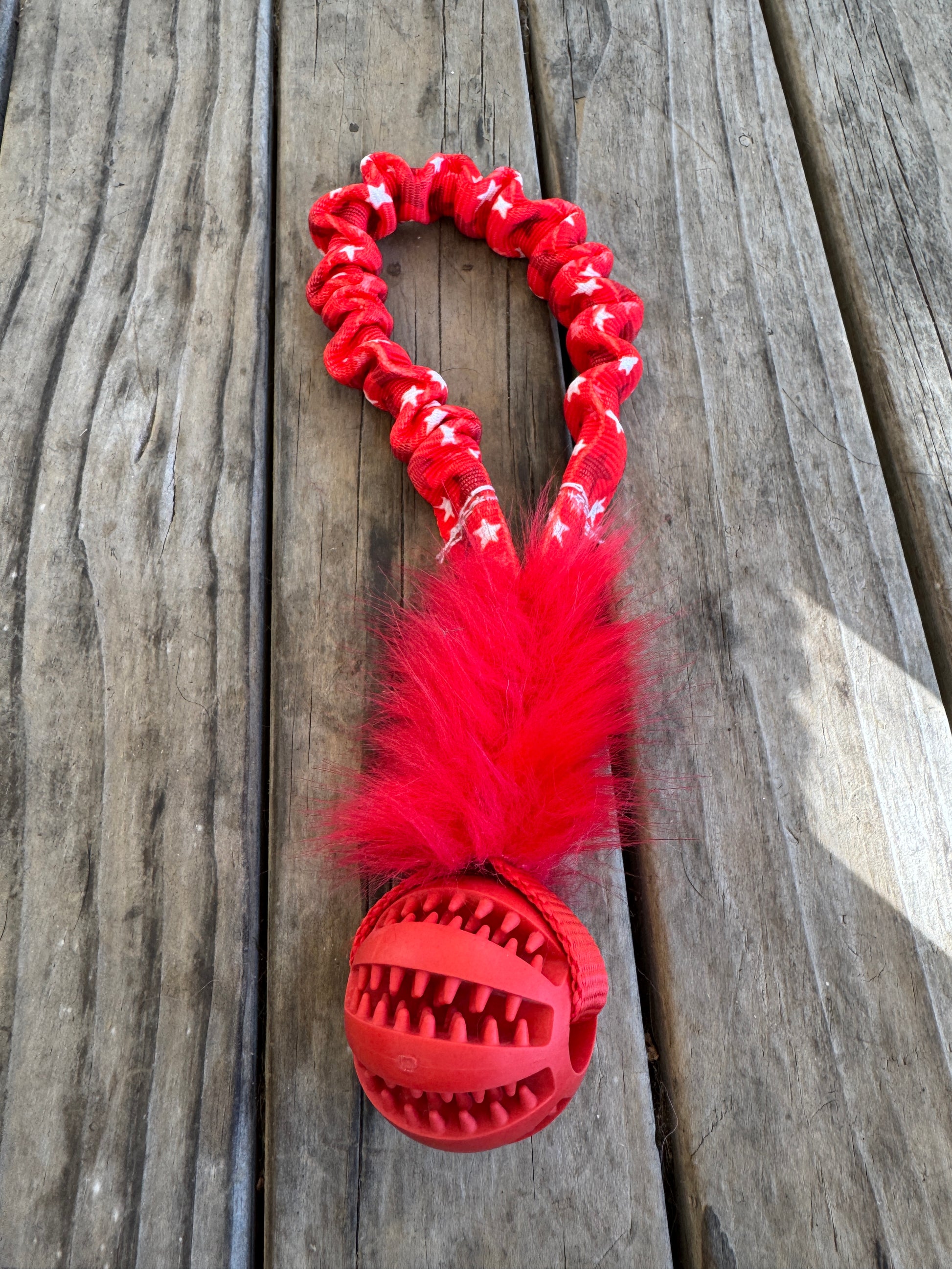 Short Bungee Handle with faux fur. Great toy that can be folded to fit in your hand or pocket.